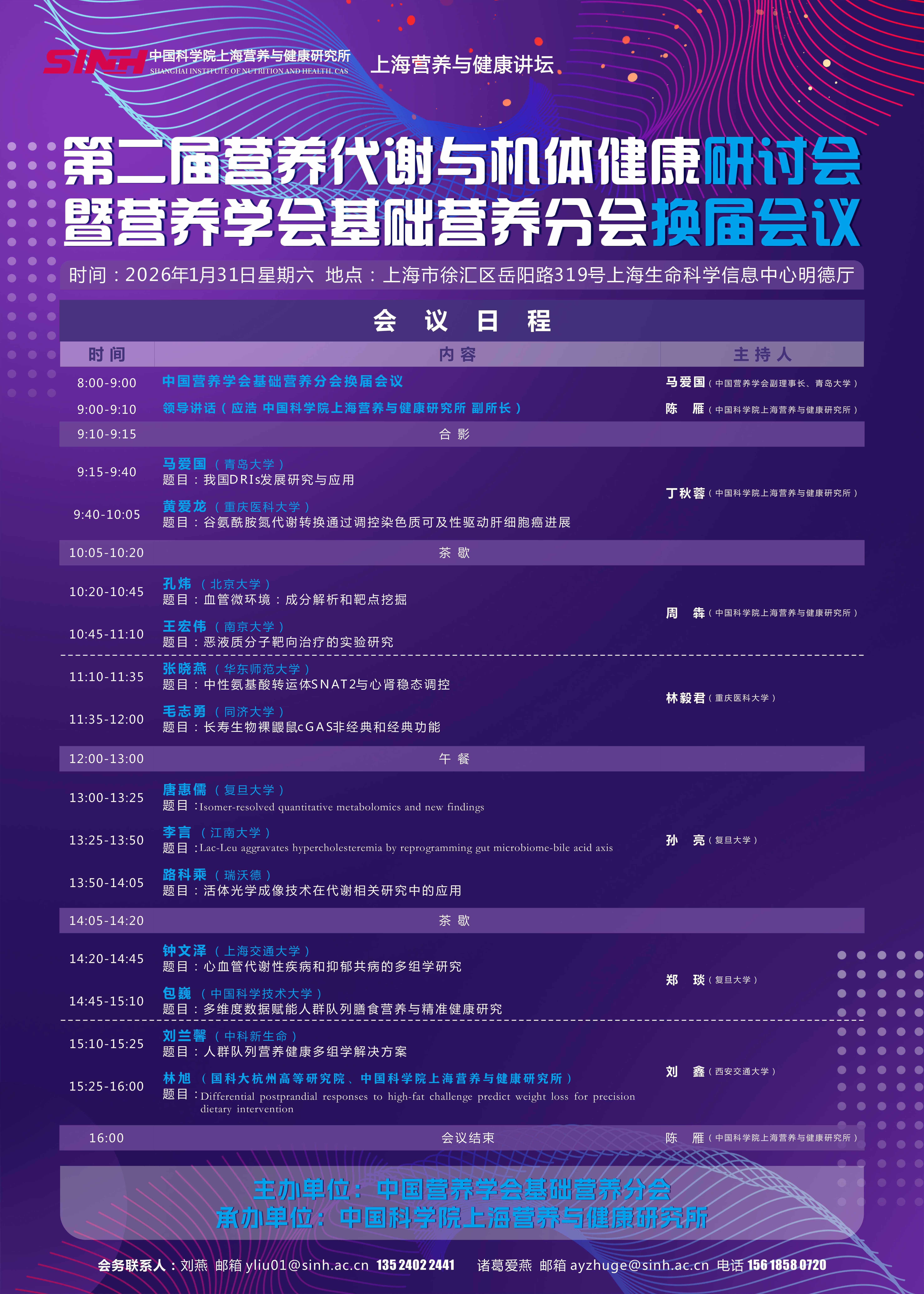 1月31日|第二屆營養(yǎng)代謝與機(jī)體健康研討會(huì)暨營養(yǎng)學(xué)會(huì)基礎(chǔ)營養(yǎng)分會(huì)換屆會(huì)議